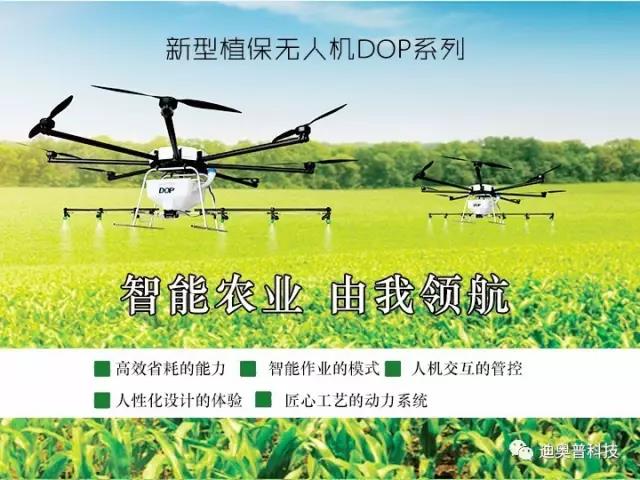 “DOP系列农业植保无人机”是迪奥普科技自主研制的最新型多用途农用植保无人机,该系列植保无人机有四旋翼、六旋翼、八旋翼构型,具有效率高、成本低、操作简单、喷洒均匀、雾化效果好等特点。