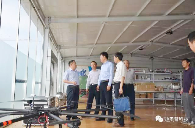 2017年5月19日,省农业厅厅长关建勋、省植保站站长王新安、省农业遥感中心副主任王毅敏到迪奥普科技参观考察,迪奥普科技董事长马宏兵陪同讲解。