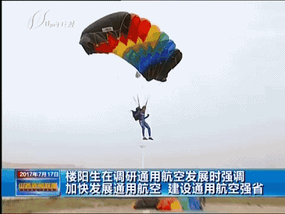 在尧城机场,学校正在组织定点跳伞训练。一架运12飞机载着14名跳伞运动员腾空而起,在1000米高度,健儿们从机舱跃出,乘着降落伞逐个定点降落在靶盘中央。楼阳生一边观看训练,一边为运动员的精彩表现“点赞”,鼓励大家刻苦训练,多出成绩,为祖国争光,为山西添彩。在看望驾机归来的两位飞行员时,楼阳生说,通用航空发展离不开航空人才,你们将来大有可为,希望继续发扬优良传统,为山西通用航空事业发展和人才培养作出新贡献。随后,楼阳生来到机库察看陈列的运五、初教六、运十二、塞斯纳等机型,详细询问机型性能,登上机场指挥塔台,察看雷达系统、气象系统,走进高仿真舱室亲身体验模拟飞行。他叮嘱航校负责人要依托良好基础,挖掘潜力,做强做大航空体育产业,着力打造山西通用航空品牌。